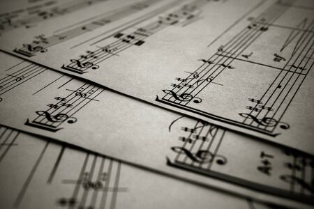 Vintage sheets of musical notes. Still life.