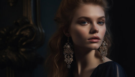 Beautiful woman in luxurious fashion, elegant and glamorous portrait generated by artificial intelligence