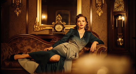 Portrait of a beautiful fashionable woman in a luxurious interior. Retro style.