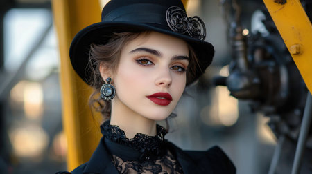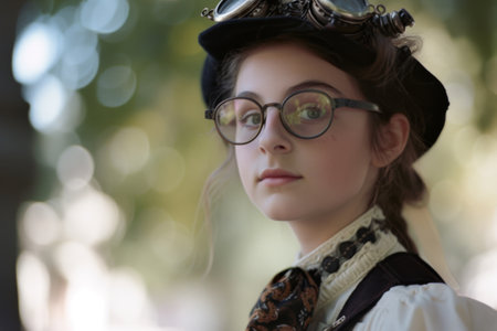 Portrait of a beautiful steampunk woman with flowers in her hair
