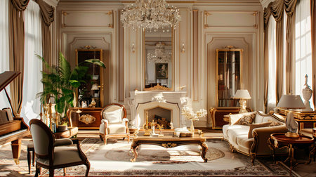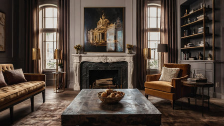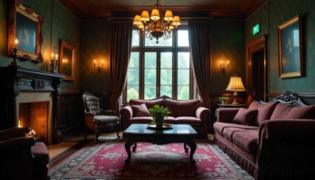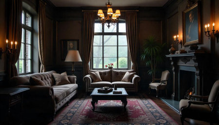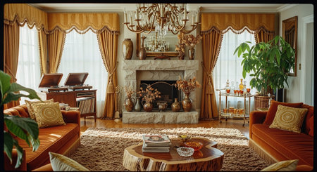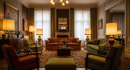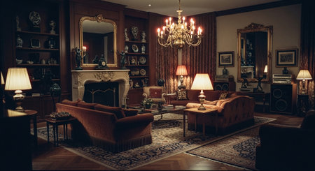 Discover the beauty of an elegant vintage living room featuring plush seating, ornate fixtures, and a warm ambiance perfect for relaxation and gatherings.