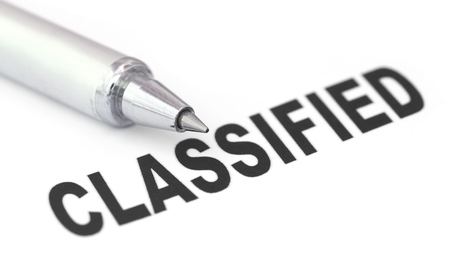 Classified printed in a white paper with pen