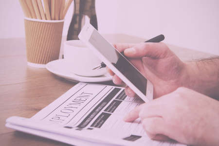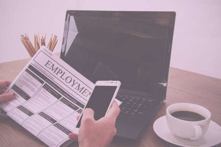 Searching for a new job or employment in a newspaper Vintage Retro Filter.