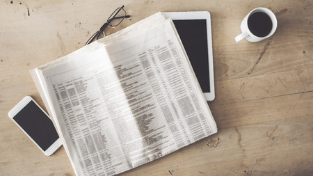 High angle view of a business newspaper with copy space on a desk