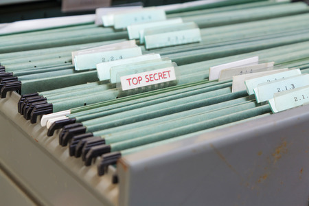 Top secret document, decreted, confidential information, secret text. Classified information. State secret. Research and study of secret documents.