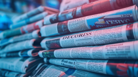 Latest high quality news feed displayed on newspaper, tablet, and mobile phone on desk