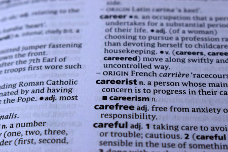 English Dictionary Page Print Close Up With The Word Meaning Of -careerist