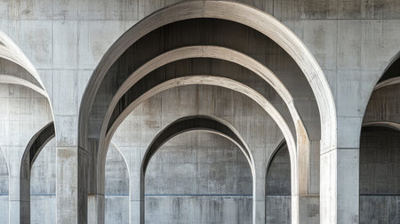 This image captures the beauty of architectural arches within a concrete structure, highlighting modern design and geometric elegance in a minimalist setting.