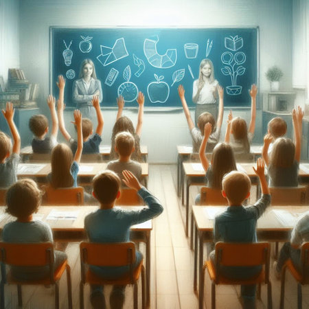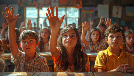 Eager Participation: Childrens Hands Raised in Class - AR 3:2