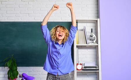 World teachers day. Teacher in classroom. School concept. Learning and education concept. Excited teacher. Portrait of a female student in university.