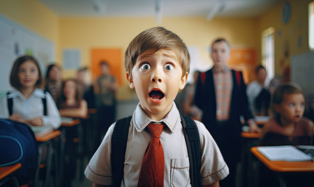 A young boy with a surprised look on his face