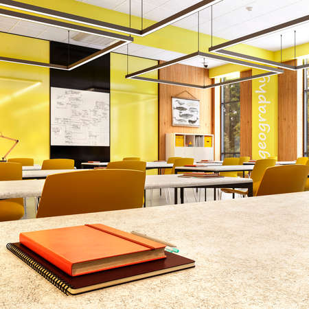 school or university clasroom interior 3d illustration