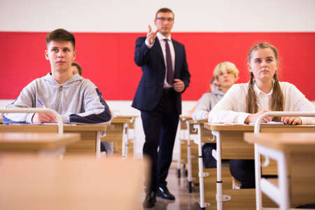 Teenage students working at class during lesson