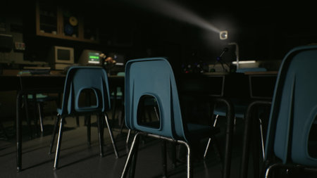 Inspirational glow of the projector in a darkened classroom, a window to boundless knowledge