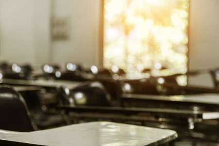 Classroom in background without ,No student or teacher . with Sunset limelight near window.
