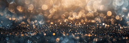 Detail showing sparkling silver and gold glitter bokeh with starburst light effects and soft focus circles creating a and celebratory ambiance keywords: glitter,...