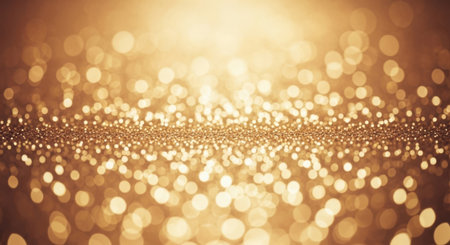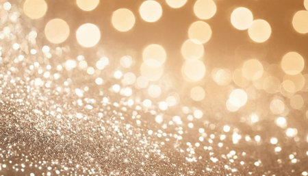 A soft focus background filled with shimmering golden and rose gold glitter and gentle bokeh lights creating a warm and glow.