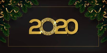 2020 New Year luxury design concept. Golden 2020 New Year horizontal template with golden glitter on black background