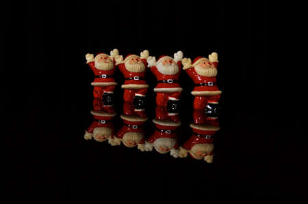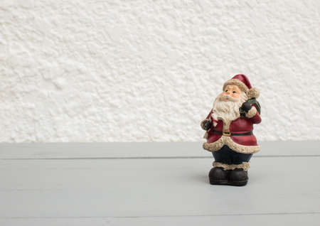 Santa Claus toy figure with silver bell on his hand isolated on white background.