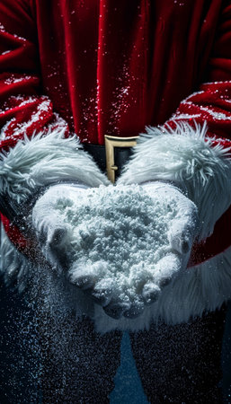 Santa claus hands holding snow, christmas, new year concepts and future beginnings