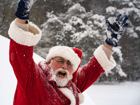 Cool funny playful naughty Santa Claus grandfather fooling around