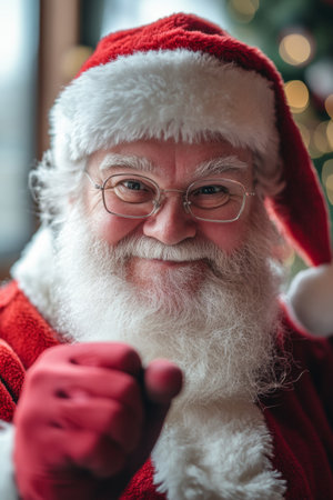 Cheerful Santa Claus with a warm smile celebrating Christmas in a cozy holiday setting during winter festivities