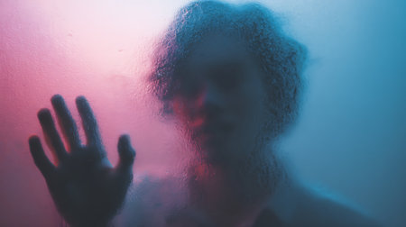 dangerous man behind the frosted glass.Mystery man. abstract Halloween background