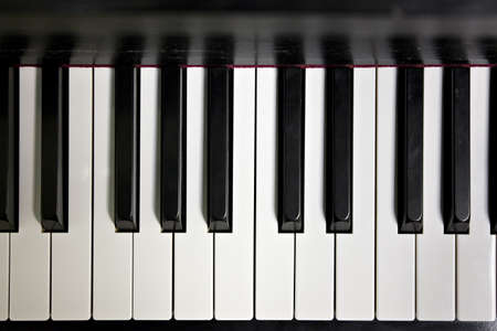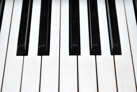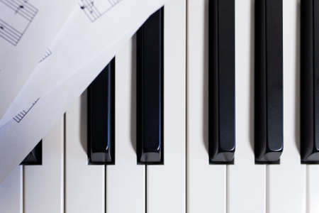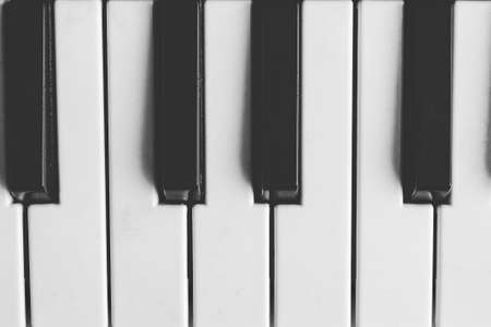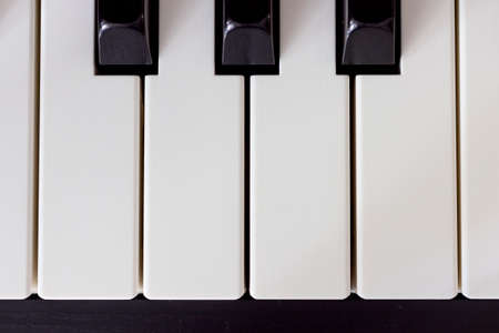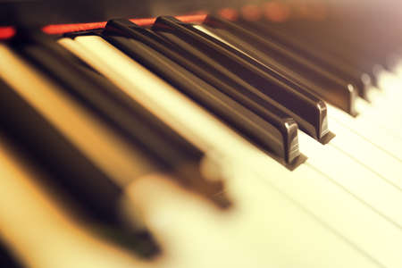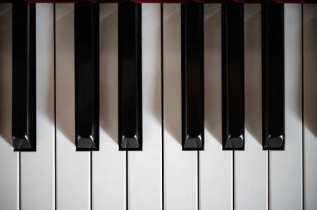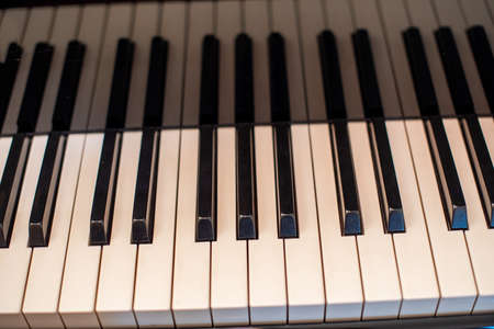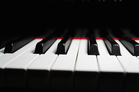 Learn how to play piano. Close up view of black and white piano keys. Musical instrument