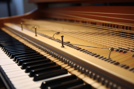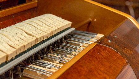 A detailed look inside the heart of a grand piano, where intricate mechanics meet artistry.