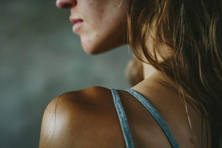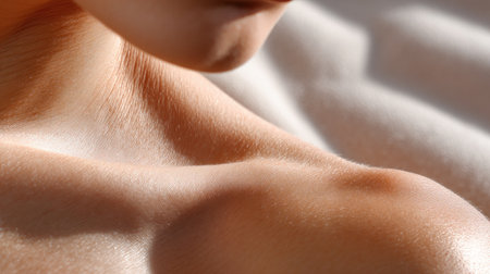 A captivating close-up of smooth skin on a shoulder, beautifully lit to enhance the natural texture and aesthetic appeal, perfect for beauty and wellness themes.