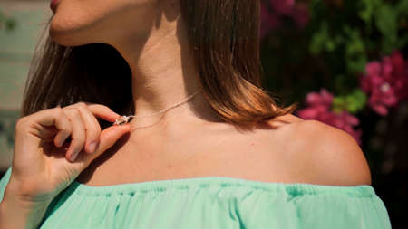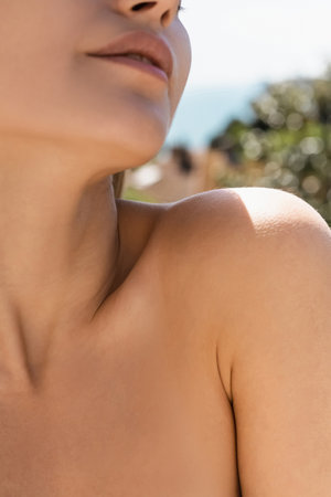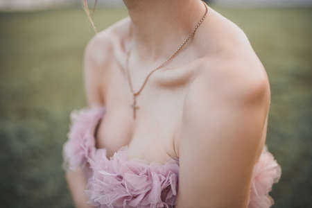 View on woman's neck, collarbone, breast and shoulders, close-up