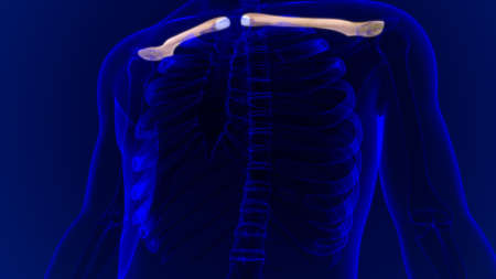 Human skeleton anatomy Clavicle Bones 3D Rendering For Medical Concept