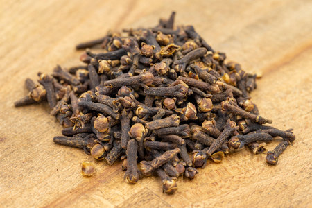 dried cloves Syzygium aromaticum on olive wood