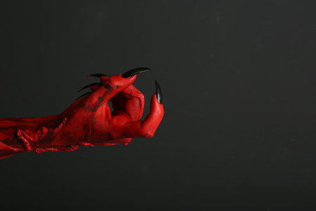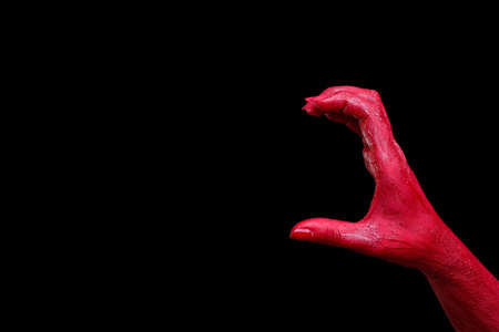 Red devil creepy halloween hand on a black background