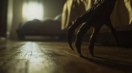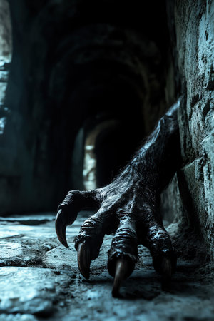 Monster claw reaching out from darkness with sharp nails