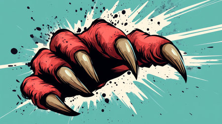 Red monster claw ripping through background illustration