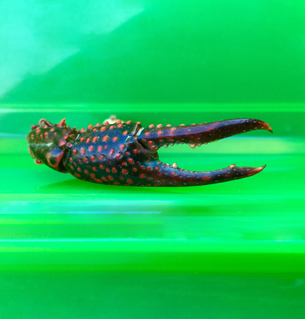 Pincers of a red swamp crayfish (Procambarus clarkii) with red points in closeup
