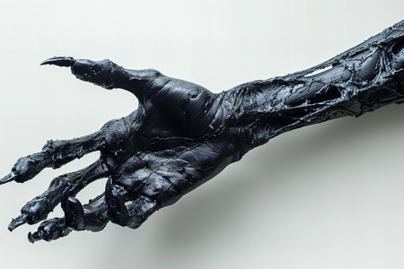 Creepy monster hand isolated on black background with clipping path