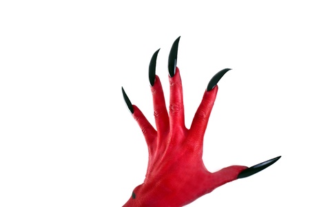 a red devil hand with black nails
