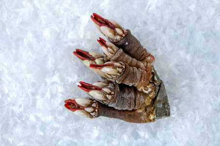 Percebes or goose neck barnacle seafood bunch on the ice.Pollicipes pollicipes