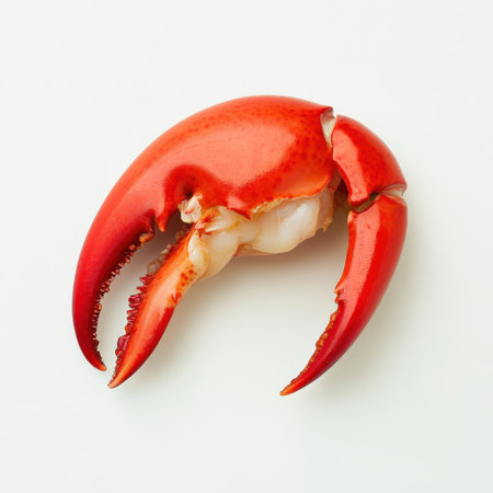 This vibrant boiled lobster claw showcases a rich red hue, highlighting its succulent meat and intricate details. Perfect for seafood lovers seeking to enjoy this delicacy.