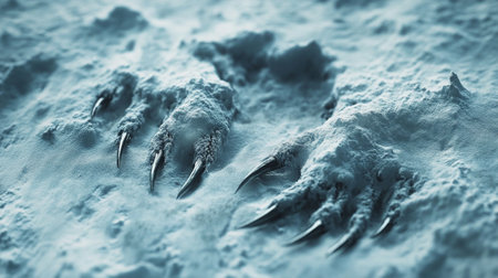 Frozen animal claws in the snow. Winter background. Toned.