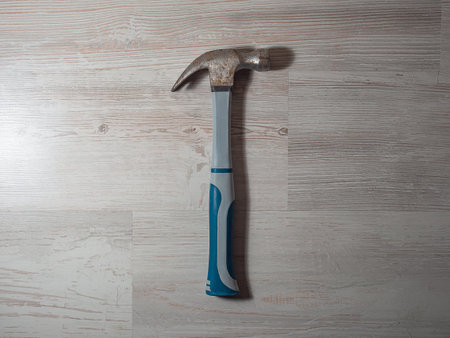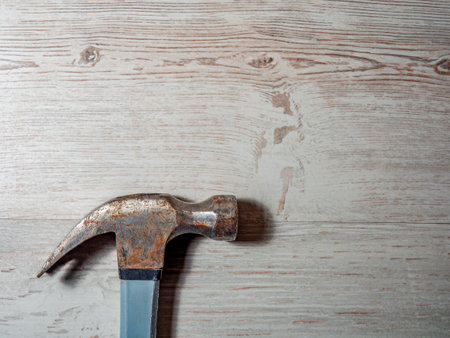 hammer on wooden table light brown