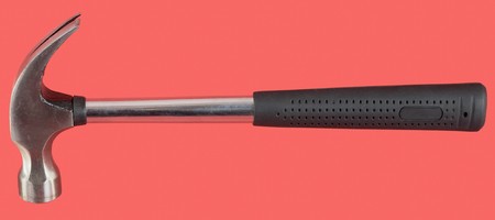 Metal hammer, isolated on the red background