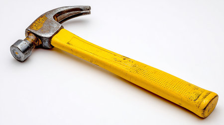 Hammer Tool with Rubber Grip and Steel Head, Ideal for Home Improvement, DIY Projects, and Construction Work, Isolated on Clean White Background