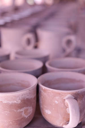 Handmade Ceramic cups in the local workshop, Thailand.