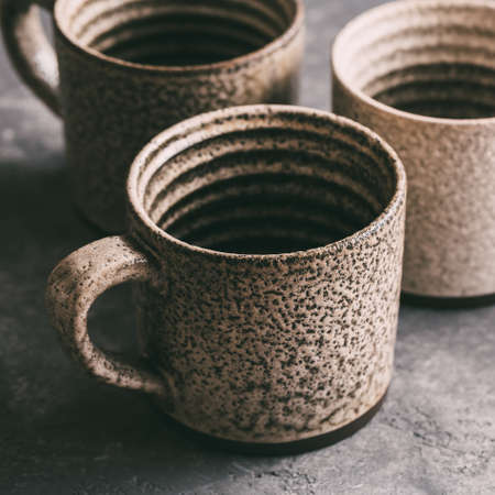 Empty ceramic coffee mugs, close-up