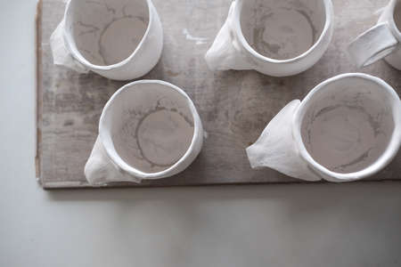Workshop made ceramic cups. Top view