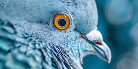 Macro photo of a blue plumage pigeon with a textured background.