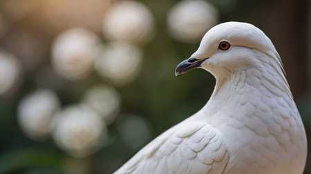 AI Generated. A beautiful close-up of a white dove with a blurred background The dove is looking to the right of the frame with its head cocked to the side